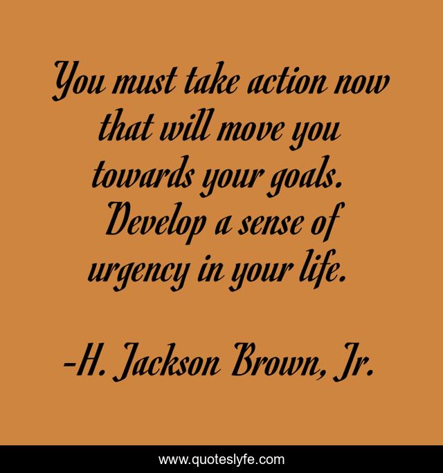 This page presents the quote "You must take action now that will move you towards your goals. Develop a sense of urgency in your life.". Author of this quote is H. Jackson Brown, Jr.. This quote is about action, life, goals,.