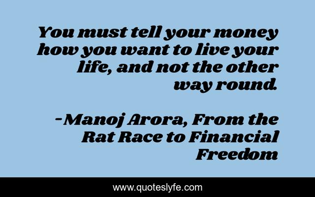 "Manoj Arora, From the Rat Race to Financial Freedom Quotes." Quoteslyfe.com, 2025. Mon. 08 Dec. 2025. <https://www.quoteslyfe.com/quote/You-must-tell-your-money-how-you-80194>.