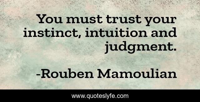 This page presents the quote "You must trust your instinct, intuition and judgment.". Author of this quote is Rouben Mamoulian. This quote is about instinct, intuition,.