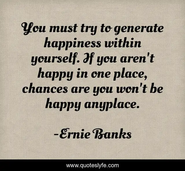 This page presents the quote "You must try to generate happiness within yourself. If you aren't happy in one place, chances are you won't be happy anyplace.". Author of this quote is Ernie Banks. This quote is about be happy, happy, yourself,.