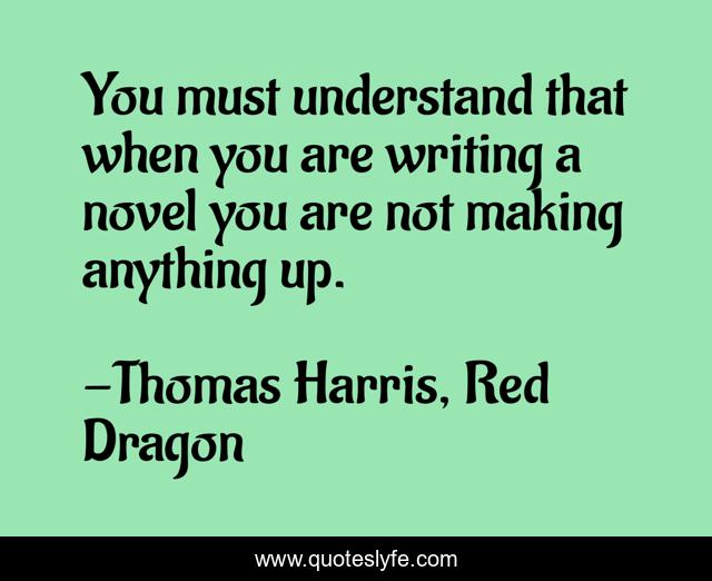 This page presents the quote "You must understand that when you are writing a novel you are not making anything up.". Author of this quote is Thomas Harris, Red Dragon. This quote is about author, writing,.