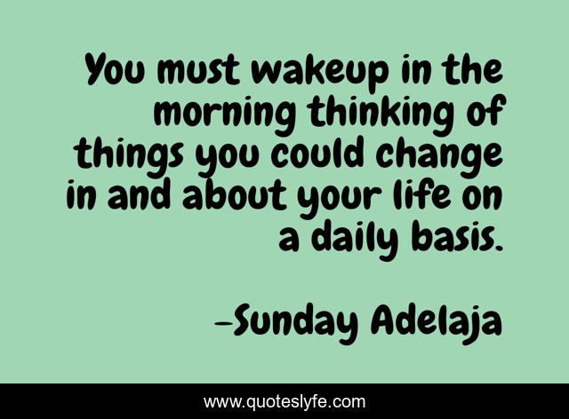 This page presents the quote "You must wakeup in the morning thinking of things you could change in and about your life on a daily basis.". Author of this quote is Sunday Adelaja. This quote is about thinking, life, morning,.