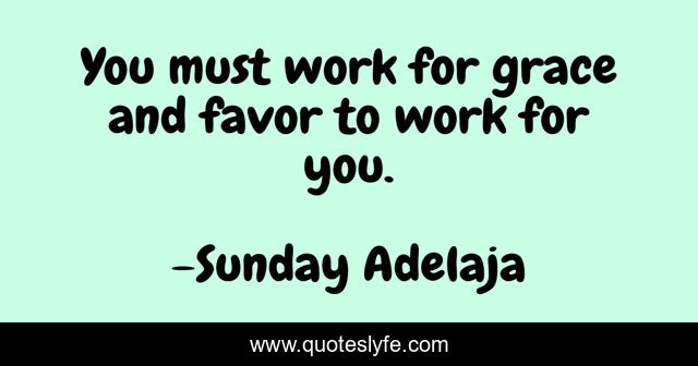 This page presents the quote "You must work for grace and favor to work for you.". Author of this quote is Sunday Adelaja. This quote is about grace-and-favor, work, favour, grace,.
