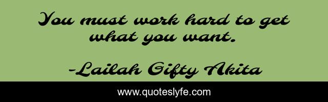 This page presents the quote "You must work hard to get what you want.". Author of this quote is Lailah Gifty Akita. This quote is about success, work-hard, work, self-motivation, education, you-can,.