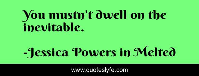 This page presents the quote "You mustn't dwell on the inevitable.". Author of this quote is Jessica Powers in Melted. This quote is about lysteria, magic, jessica-powers,.
