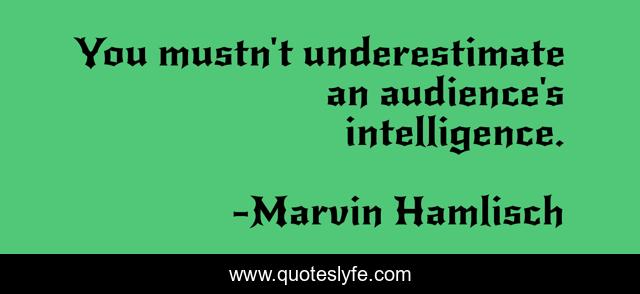 This page presents the quote "You mustn't underestimate an audience's intelligence.". Author of this quote is Marvin Hamlisch. This quote is about audience, underestimate,.