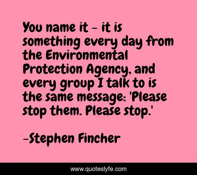 This page presents the quote "You name it - it is something every day from the Environmental Protection Agency, and every group I talk to is the same message: 'Please stop them. Please stop.'". Author of this quote is Stephen Fincher. This quote is about every day, day, name,.