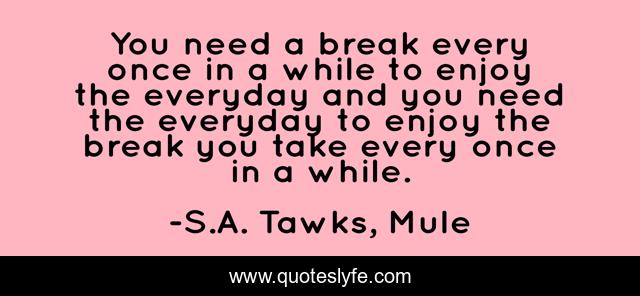 "S.A. Tawks, Mule Quotes." Quoteslyfe.com, 2025. Sat. 06 Dec. 2025. <https://www.quoteslyfe.com/quote/You-need-a-break-every-once-in-137217>.