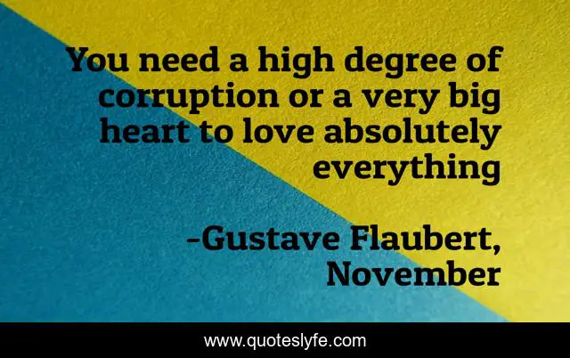 This page presents the quote "You need a high degree of corruption or a very big heart to love absolutely everything". Author of this quote is Gustave Flaubert, November. This quote is about criticism, critics, love, affection,.