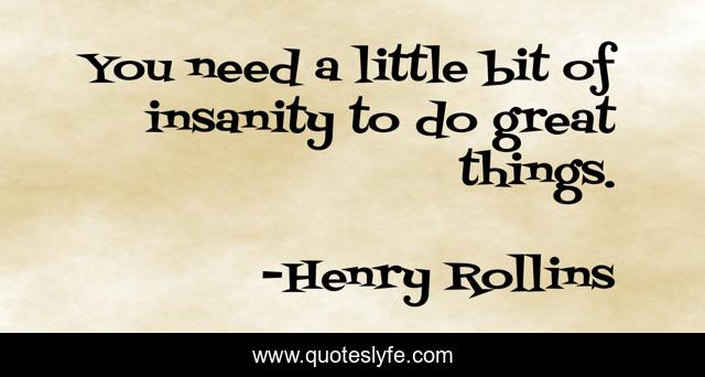 This page presents the quote "You need a little bit of insanity to do great things.". Author of this quote is Henry Rollins. This quote is about great-things, insanity,.