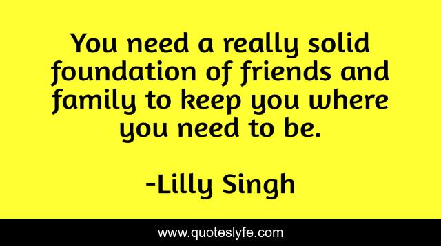 This page presents the quote "You need a really solid foundation of friends and family to keep you where you need to be.". Author of this quote is Lilly Singh. This quote is about foundation, friends,.