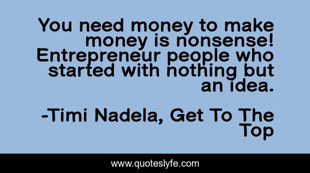 This page presents the quote "You need money to make money is nonsense! Entrepreneur people who started with nothing but an idea.". Author of this quote is Timi Nadela, Get To The Top. .