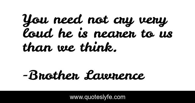 "Brother Lawrence Quotes." Quoteslyfe.com, 2025. Fri. 05 Dec. 2025. <https://www.quoteslyfe.com/quote/You-need-not-cry-very-loud-he-273727>.