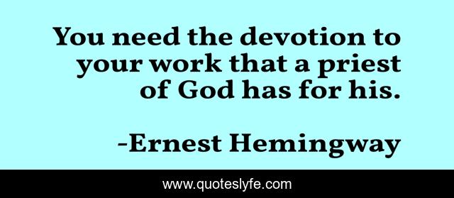 This page presents the quote "You need the devotion to your work that a priest of God has for his.". Author of this quote is Ernest Hemingway. This quote is about writing, writing-process, writing-life, writing-advice,.