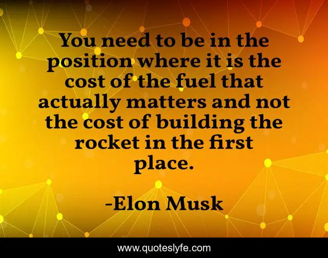 This page presents the quote "You need to be in the position where it is the cost of the fuel that actually matters and not the cost of building the rocket in the first place.". Author of this quote is Elon Musk. This quote is about building, place,.