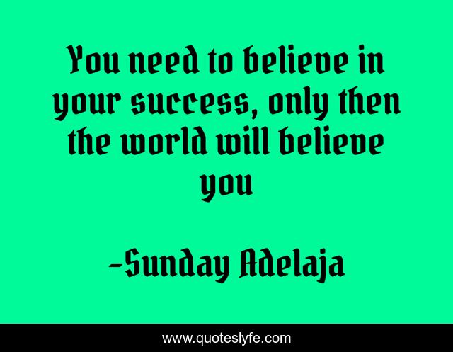 "Sunday Adelaja Quotes." Quoteslyfe.com, 2025. Sat. 06 Dec. 2025. <https://www.quoteslyfe.com/quote/You-need-to-believe-in-your-success-33008>.