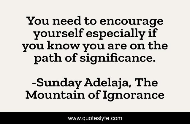 This page presents the quote "You need to encourage yourself especially if you know you are on the path of significance.". Author of this quote is Sunday Adelaja, The Mountain of Ignorance. This quote is about mountain, life, light, darkness, power, danger, god, people, ignorance,.