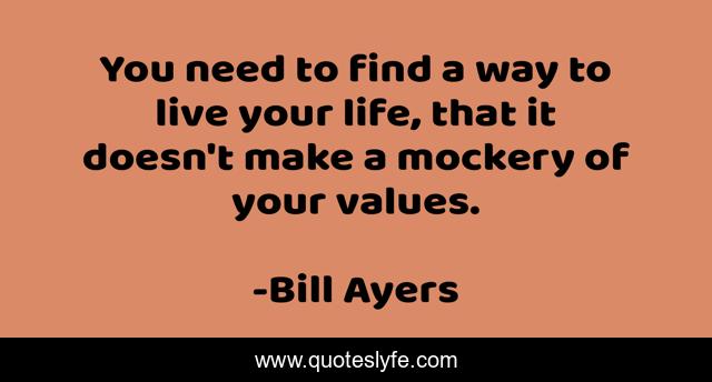 This page presents the quote "You need to find a way to live your life, that it doesn't make a mockery of your values.". Author of this quote is Bill Ayers. This quote is about enthusiasm, life, inspirational,.
