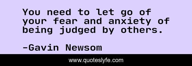 This page presents the quote "You need to let go of your fear and anxiety of being judged by others.". Author of this quote is Gavin Newsom. This quote is about need, anxiety,.