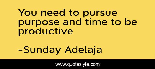 This page presents the quote "You need to pursue purpose and time to be productive". Author of this quote is Sunday Adelaja. This quote is about life, chasing-time, productivity, finance, chasing-purpose, blessing, product, job, productive,.