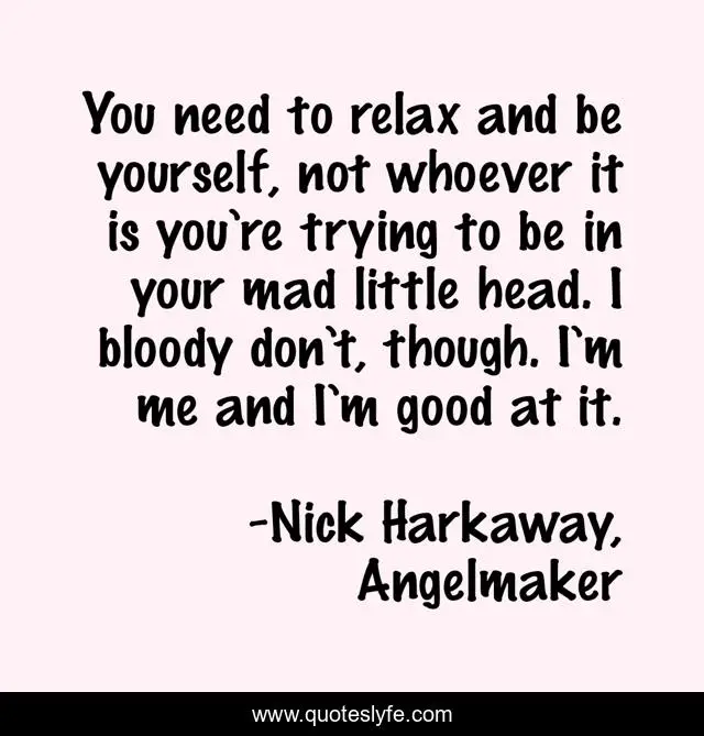 "Nick Harkaway, Angelmaker Quotes." Quoteslyfe.com, 2025. Fri. 05 Dec. 2025. <https://www.quoteslyfe.com/quote/You-need-to-relax-and-be-yourself-149857>.