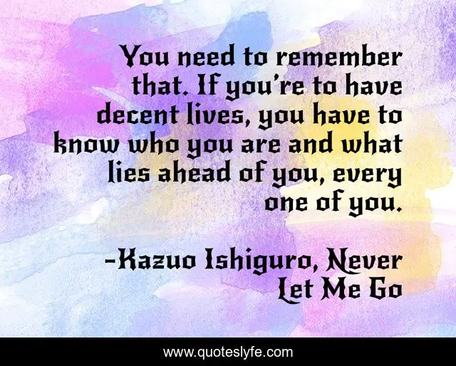 "Kazuo Ishiguro, Never Let Me Go Quotes." Quoteslyfe.com, 2025. Fri. 05 Dec. 2025. <https://www.quoteslyfe.com/quote/You-need-to-remember-that-If-you-160429>.