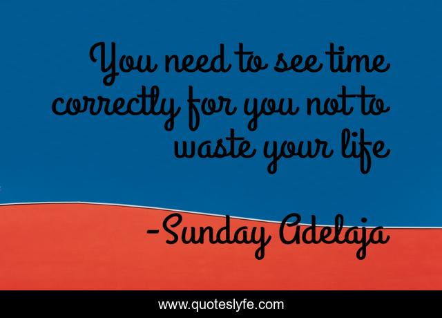 This page presents the quote "You need to see time correctly for you not to waste your life". Author of this quote is Sunday Adelaja. This quote is about life, blessing, evaluation, finance, wasted-time, money, work, time-management, job,.