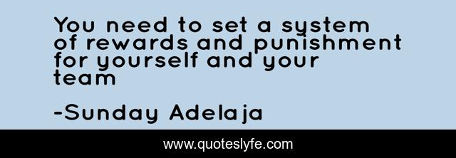 This page presents the quote "You need to set a system of rewards and punishment for yourself and your team". Author of this quote is Sunday Adelaja. This quote is about life, rewards, system, calling, purpose, team, mission, punishment,.