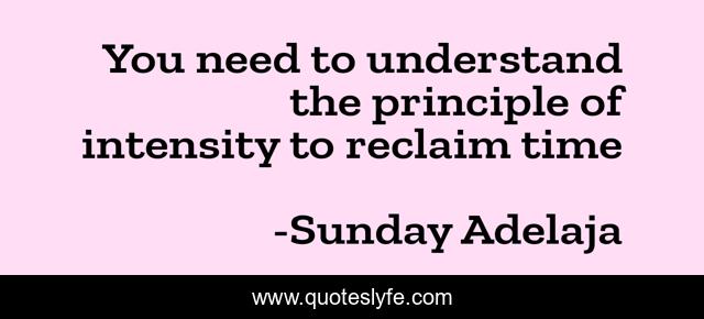 This page presents the quote "You need to understand the principle of intensity to reclaim time". Author of this quote is Sunday Adelaja. This quote is about love, pragmatic, consciousness, people, money, principles, selflessness, intensity, employment,.