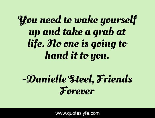 This page presents the quote "You need to wake yourself up and take a grab at life. No one is going to hand it to you.". Author of this quote is Danielle Steel, Friends Forever. This quote is about emotions, dark, tragic, rich, surprise, friendship,.