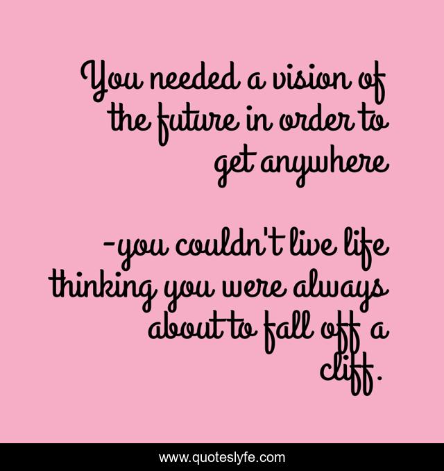 "you couldn't live life thinking you were always about to fall off a cliff. Quotes." Quoteslyfe.com, 2025. Fri. 05 Dec. 2025. <https://www.quoteslyfe.com/quote/You-needed-a-vision-of-the-future-47427>.