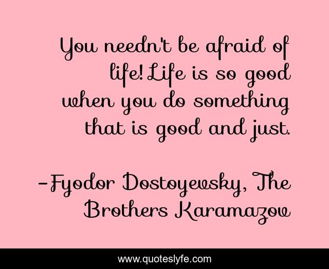 This page presents the quote "You needn't be afraid of life! Life is so good when you do something that is good and just.". Author of this quote is Fyodor Dostoyevsky, The Brothers Karamazov. .