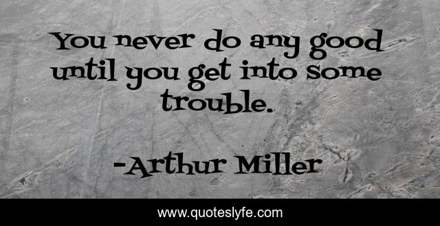 This page presents the quote "You never do any good until you get into some trouble.". Author of this quote is Arthur Miller. This quote is about activism, inspiration,.