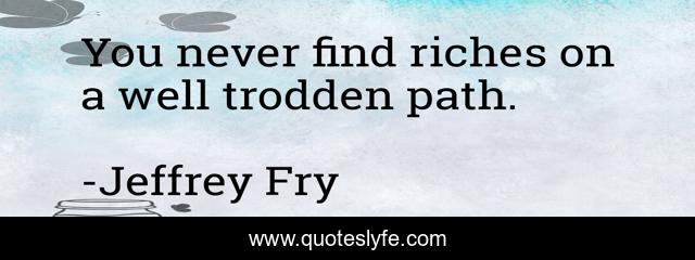 This page presents the quote "You never find riches on a well trodden path.". Author of this quote is Jeffrey Fry. This quote is about never-find, on-a, path, riches, well-trodden,.