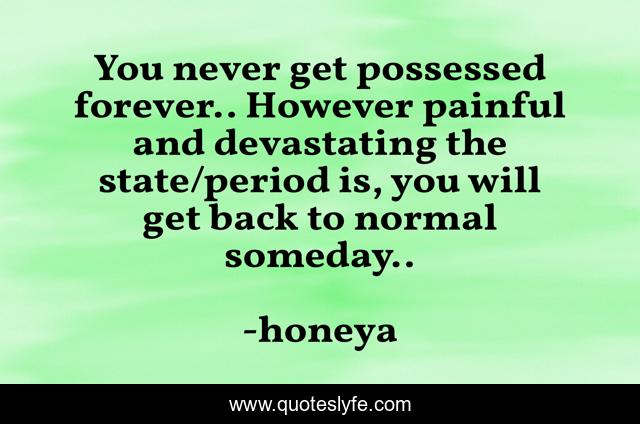 This page presents the quote "You never get possessed forever.. However painful and devastating the state/period is, you will get back to normal someday..". Author of this quote is honeya. This quote is about lessons, possessed, devastating, devasting, possesion, wise-advise, painful,.