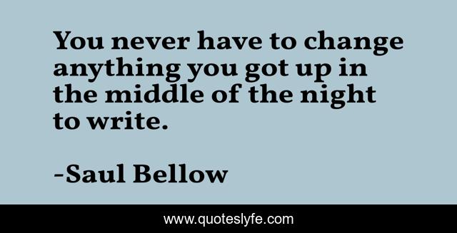 This page presents the quote "You never have to change anything you got up in the middle of the night to write.". Author of this quote is Saul Bellow. This quote is about imagination, inspiration, writing,.