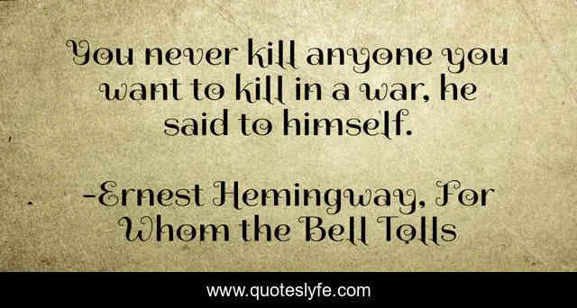 "Ernest Hemingway, For Whom the Bell Tolls Quotes." Quoteslyfe.com, 2025. Fri. 05 Dec. 2025. <https://www.quoteslyfe.com/quote/You-never-kill-anyone-you-want-to-52121>.