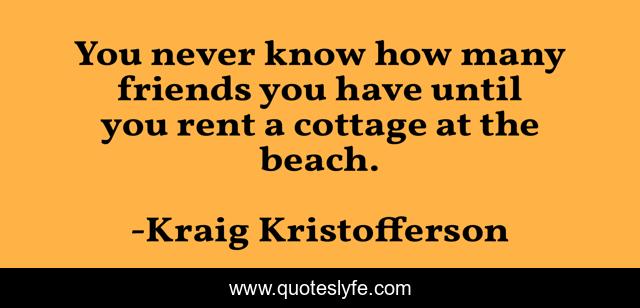 This page presents the quote "You never know how many friends you have until you rent a cottage at the beach.". Author of this quote is Kraig Kristofferson. .