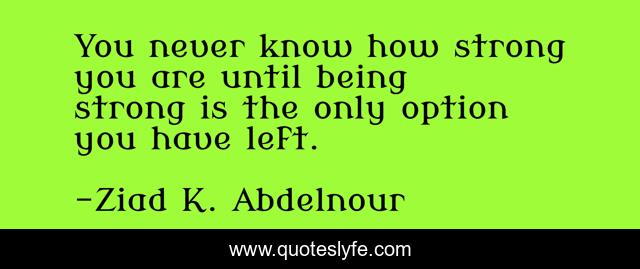 This page presents the quote "You never know how strong you are until being strong is the only option you have left.". Author of this quote is Ziad K. Abdelnour. .