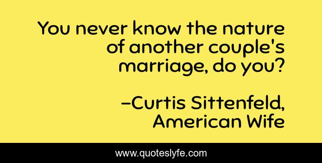 This page presents the quote "You never know the nature of another couple's marriage, do you?". Author of this quote is Curtis Sittenfeld, American Wife. .