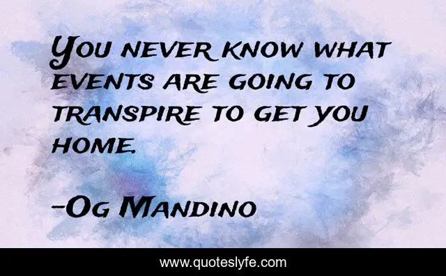 This page presents the quote "You never know what events are going to transpire to get you home.". Author of this quote is Og Mandino. .