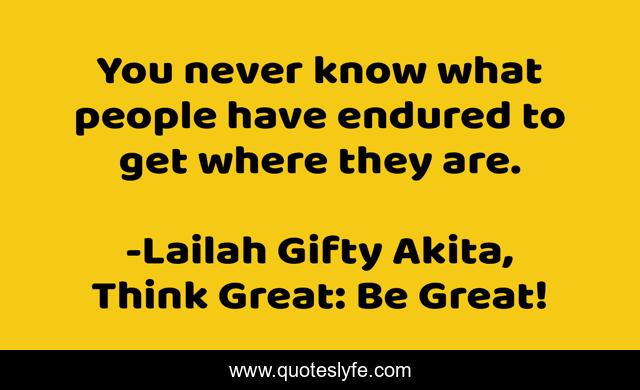 "Lailah Gifty Akita, Think Great: Be Great! Quotes." Quoteslyfe.com, 2025. Tue. 09 Dec. 2025. <https://www.quoteslyfe.com/quote/You-never-know-what-people-have-endured-158695>.