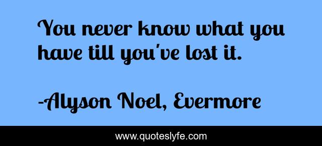 "Alyson Noel, Evermore Quotes." Quoteslyfe.com, 2025. Fri. 05 Dec. 2025. <https://www.quoteslyfe.com/quote/You-never-know-what-you-have-till-122401>.