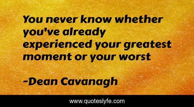 This page presents the quote "You never know whether you've already experienced your greatest moment or your worst". Author of this quote is Dean Cavanagh. .