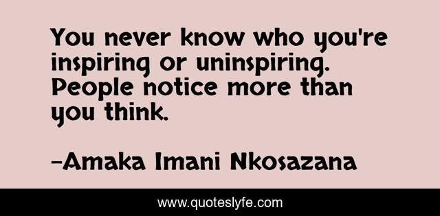 "Amaka Imani Nkosazana Quotes." Quoteslyfe.com, 2025. Mon. 08 Dec. 2025. <https://www.quoteslyfe.com/quote/You-never-know-who-you-re-inspiring-10460>.