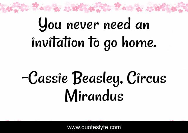 This page presents the quote "You never need an invitation to go home.". Author of this quote is Cassie Beasley, Circus Mirandus. .
