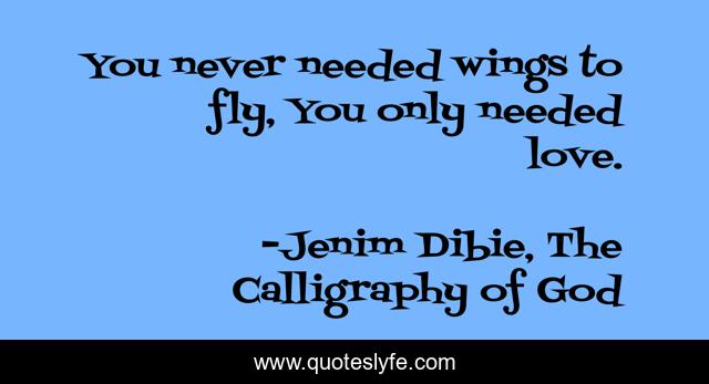 This page presents the quote "You never needed wings to fly, You only needed love.". Author of this quote is Jenim Dibie, The Calligraphy of God. This quote is about fly, flight, jenim-dibie, sky, artists, love, wings, affection, soar,.