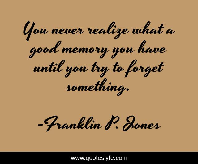 This page presents the quote "You never realize what a good memory you have until you try to forget something.". Author of this quote is Franklin P. Jones. This quote is about realize, memory,.
