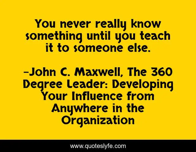 "John C. Maxwell, The 360 Degree Leader: Developing Your Influence from Anywhere in the Organization Quotes." Quoteslyfe.com, 2025. Fri. 05 Dec. 2025. <https://www.quoteslyfe.com/quote/You-never-really-know-something-until-you-215522>.