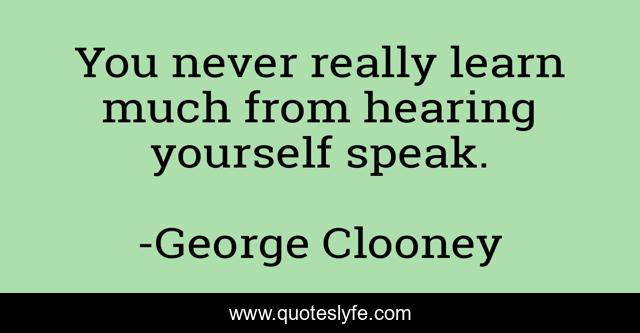 This page presents the quote "You never really learn much from hearing yourself speak.". Author of this quote is George Clooney. This quote is about ego, education, speech, arrogance,.